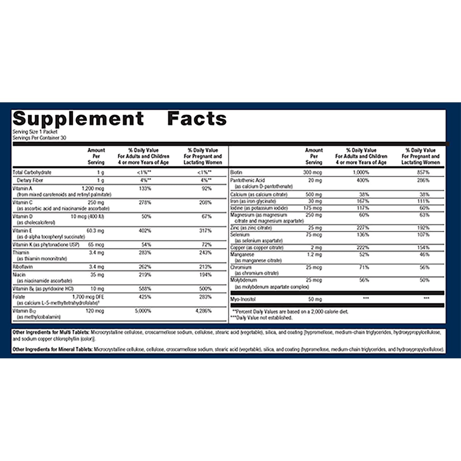 Take one packet daily with food or as directed by your healthcare practitioner. Each packet contains two (green) multi tablets and four (white) mineral tablets.